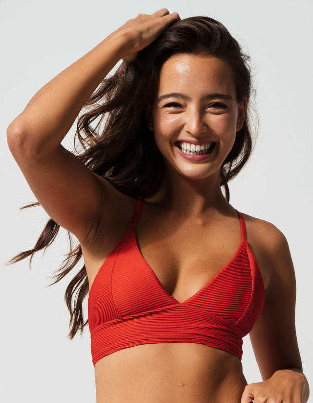 Sandbar - Womens Ribbed Plunge Bikini Top (Flores Lipstick Red)